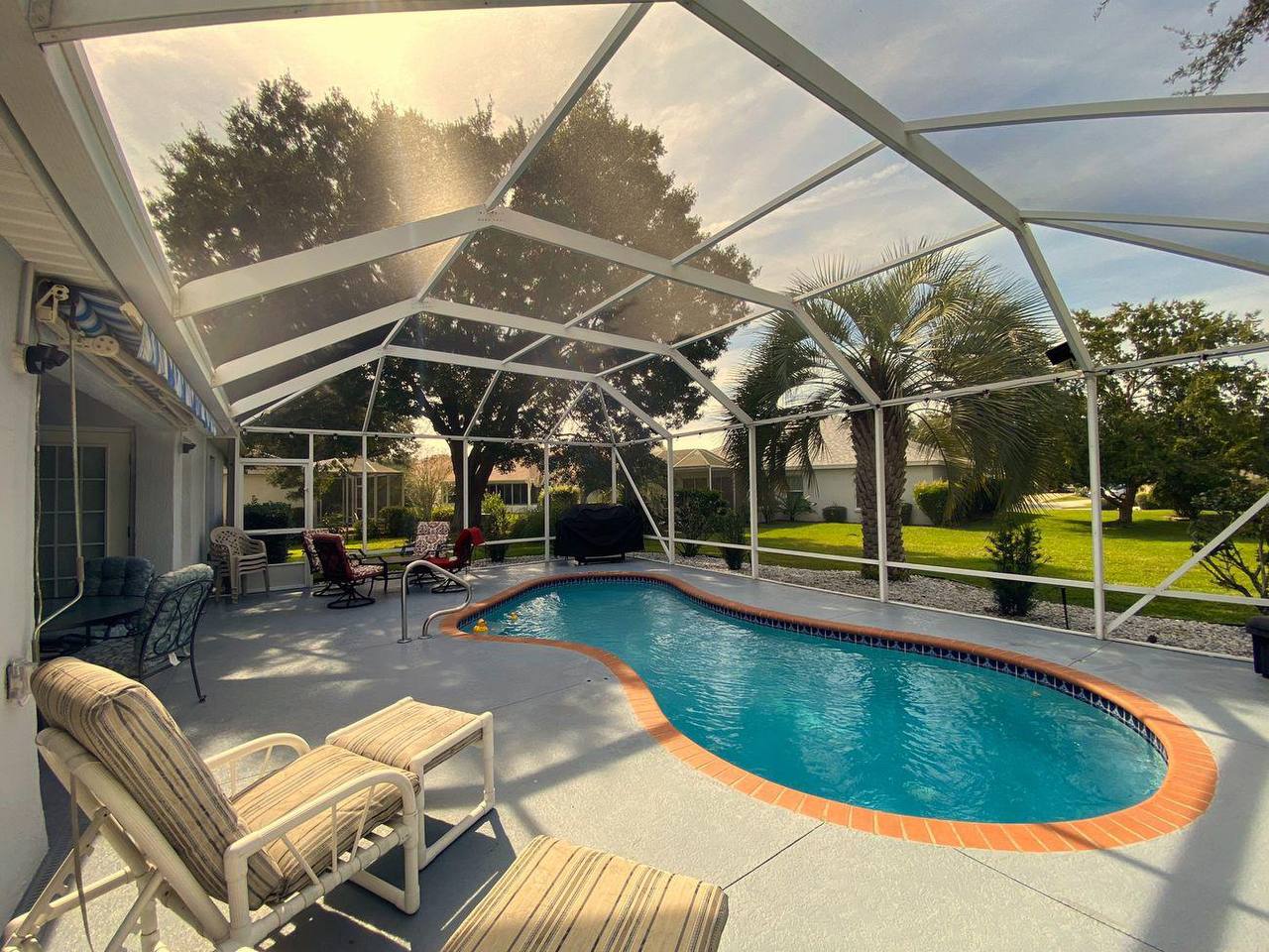 Check-in was smooth, and the house was spotless when we arrived. The location is perfect-close to Spanish Springs and Lake Sumter Landing. My wife and I loved the screened-in lanai for morning coffee. Golf cart made getting around easy. Would definitely rent again